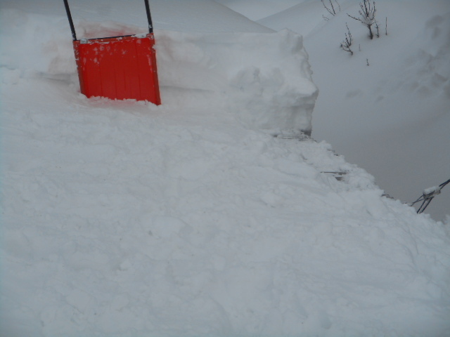 新たに降り積もる雪が滑り落ちなくなり、大変な